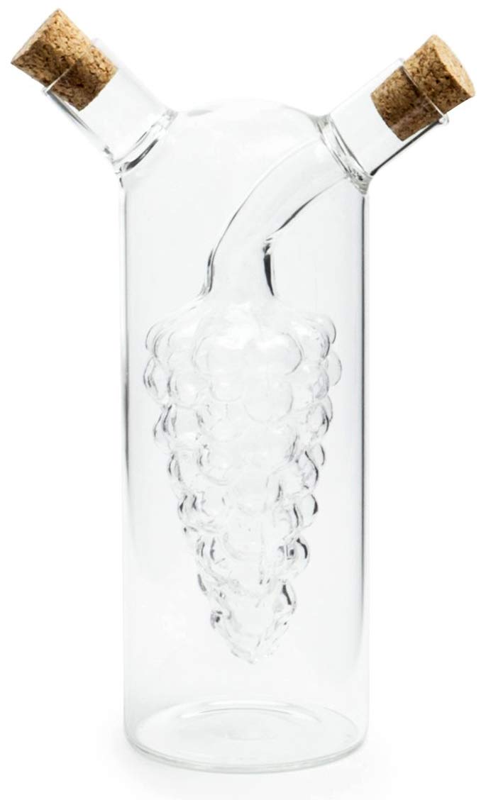Serve oil and vinegar from the same bottle; Classic shape with grape inner motif; Measures 7-inch Tall; Great Gift Idea; Nice addition to any kitchen