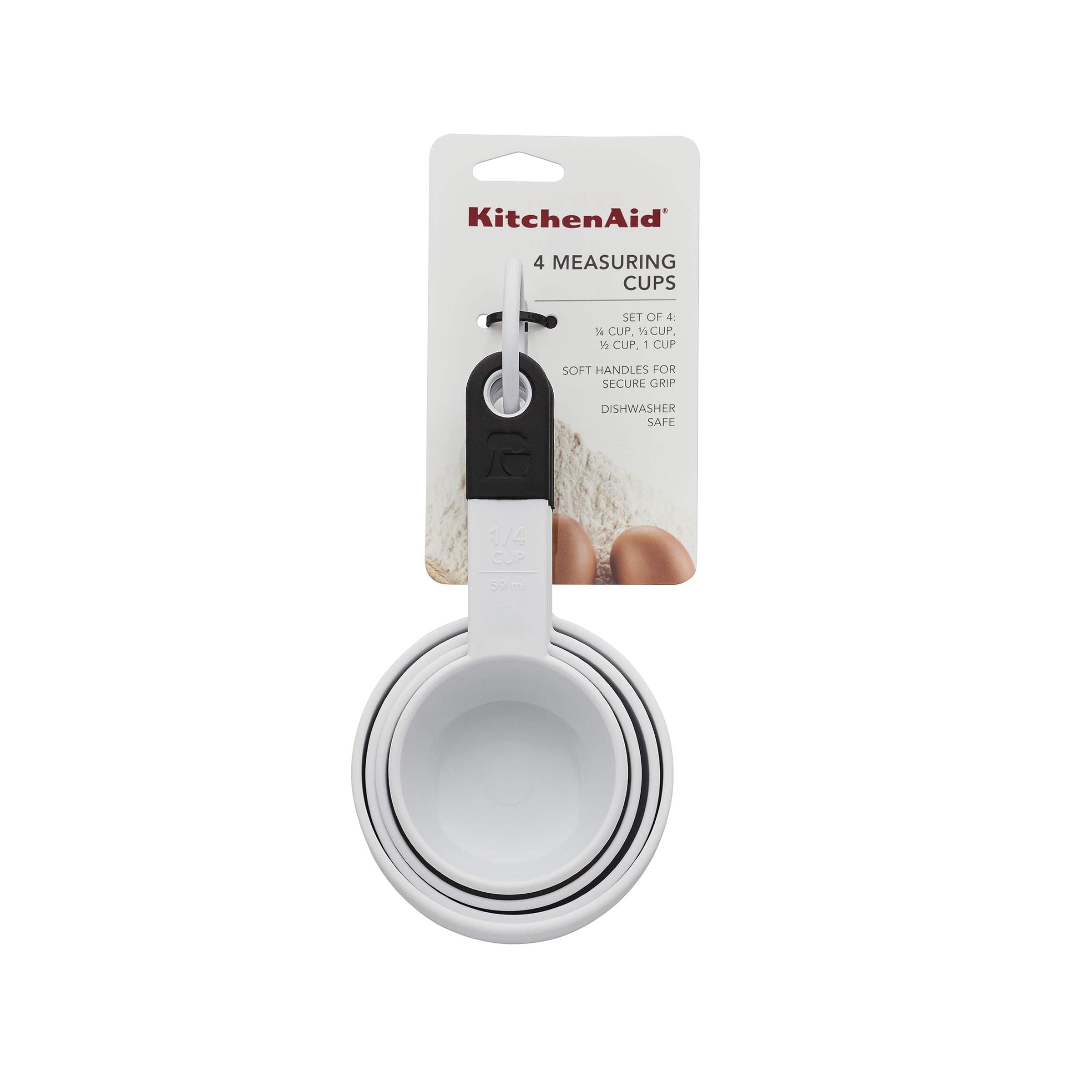 DURABLE MEASURING CUP: This measuring cup can be used for both wet and dry ingredients. Made of durable BPA-free plastic Each cup is printed on the handle with easy-to-read text in both standard and metric sizes. Each cup has a matte exterior and a glossy interior and a black soft grip with a stand mixer icon.