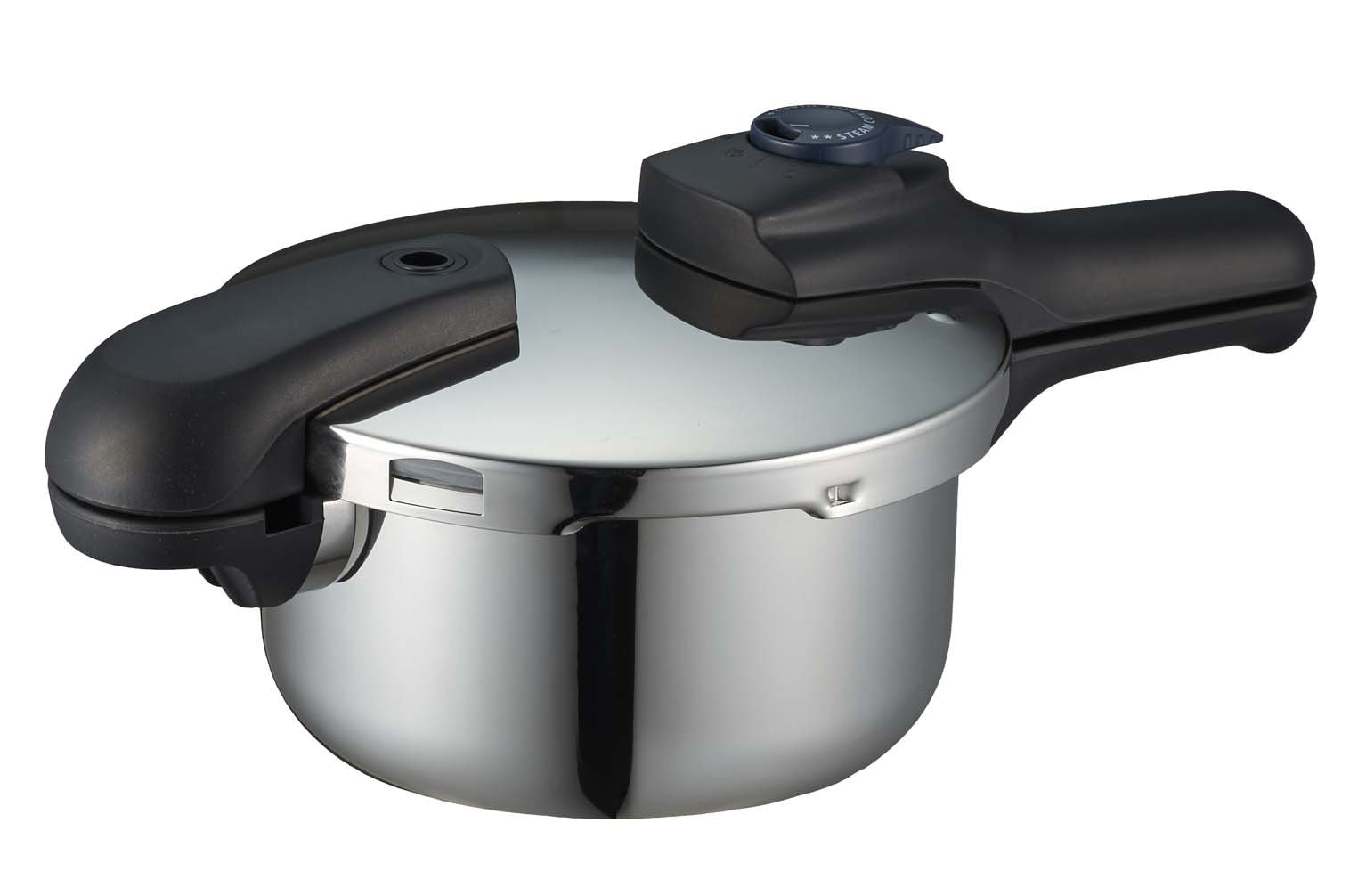 ○4合炊きの圧力鍋商品サイズ(約):W380XD210XH150mm(底の厚さ4.2mm)商品寸法(内径):18cm満水容量:2.5L本体:ステンレス鋼(クロム17%ニッケル3.5%)はり底:アルミニウム合金、ステンレス鋼(クロム16%)ふた:ステンレス鋼(クロム17%ニッケル3.5%)取っ手:フェノール樹脂(耐熱温度150度)圧力値:高圧100kpa/低圧60kpa
