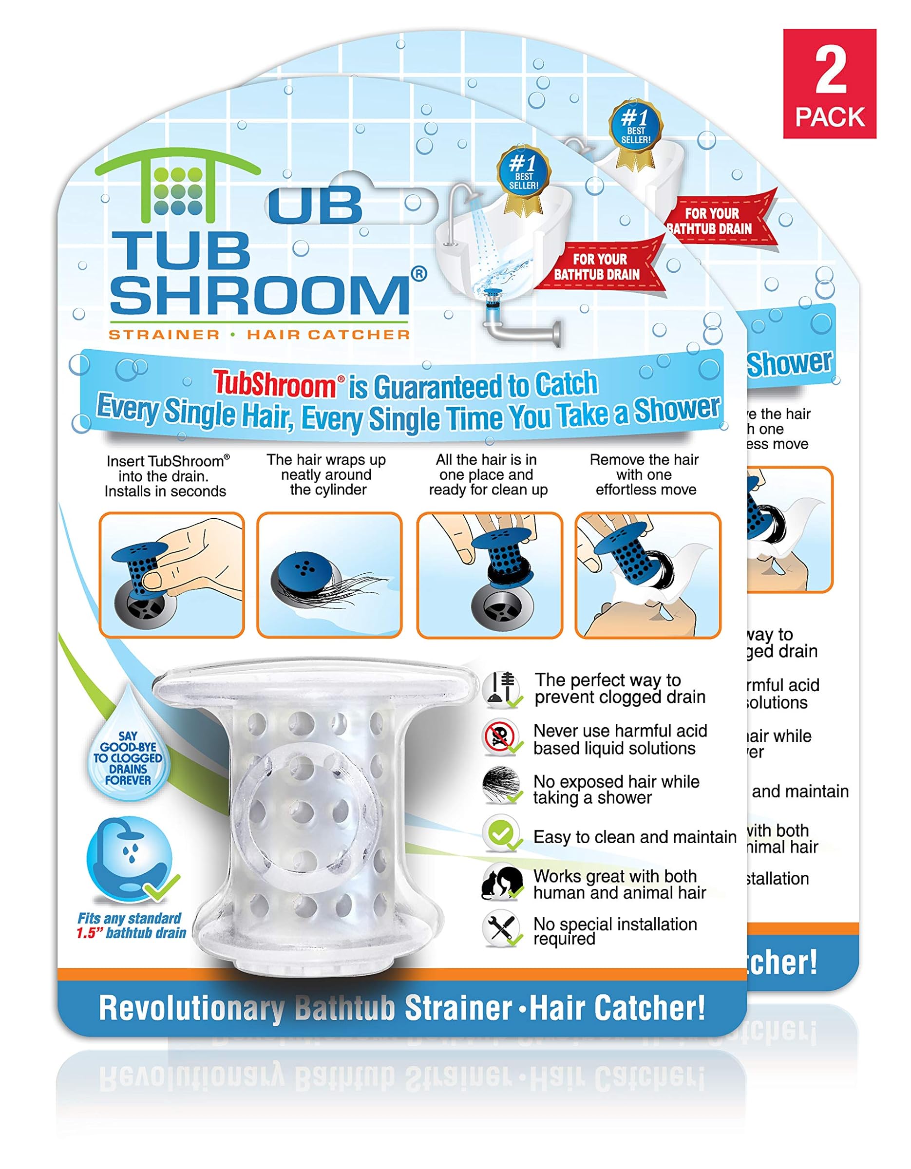 tubshroomフィット、任意の標準は浴槽放電と保証します。すべての単一のたびに髪をキャッチ